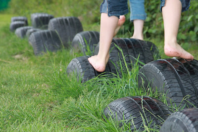 Mit dabei waren 3 Paar Füße, Sonne & Regen (wer den eingeladen hat, ist mir ein Rätsel) und jede Menge gute Laune (trotzdem!). Und während das Töchterlein samt Cousinchen und meine Wenigkeit die Natur unter unseren blanken Fußsohlen spüren wollten, ging es für meinen Kleinen hier hoch hinaus.